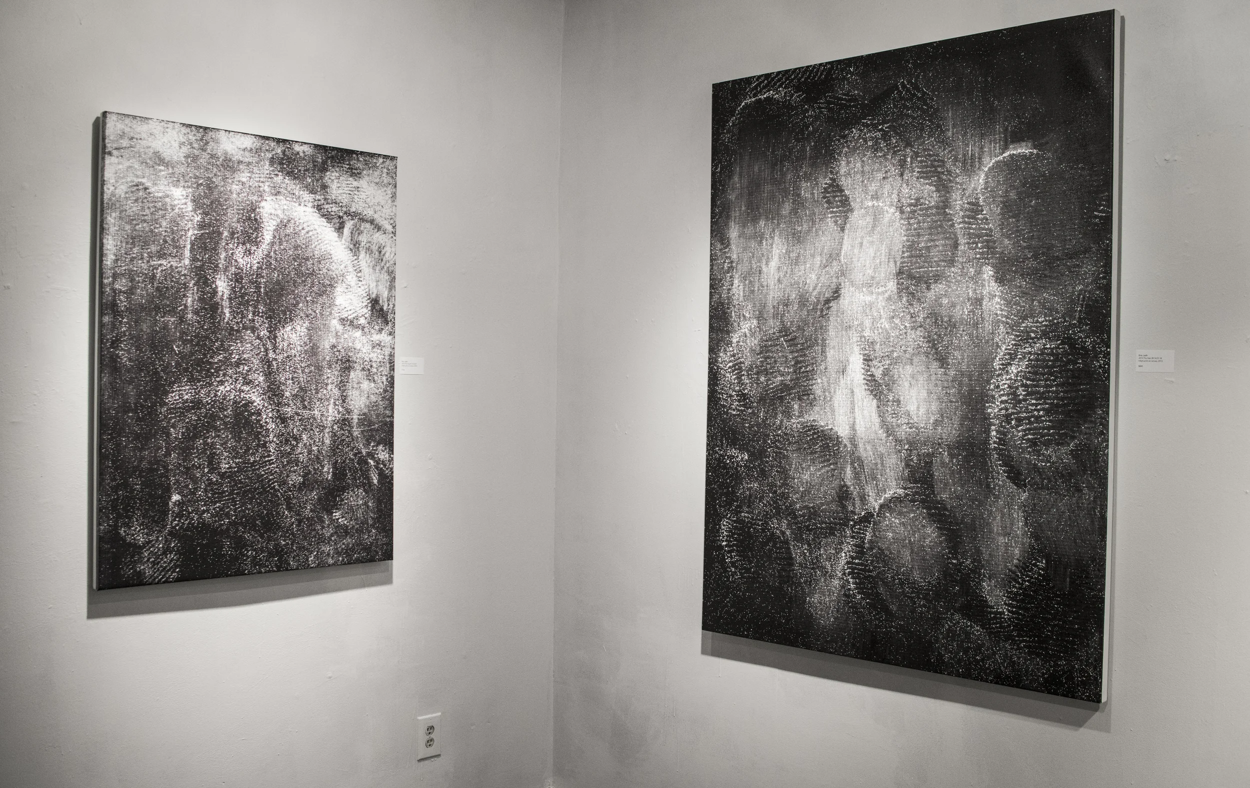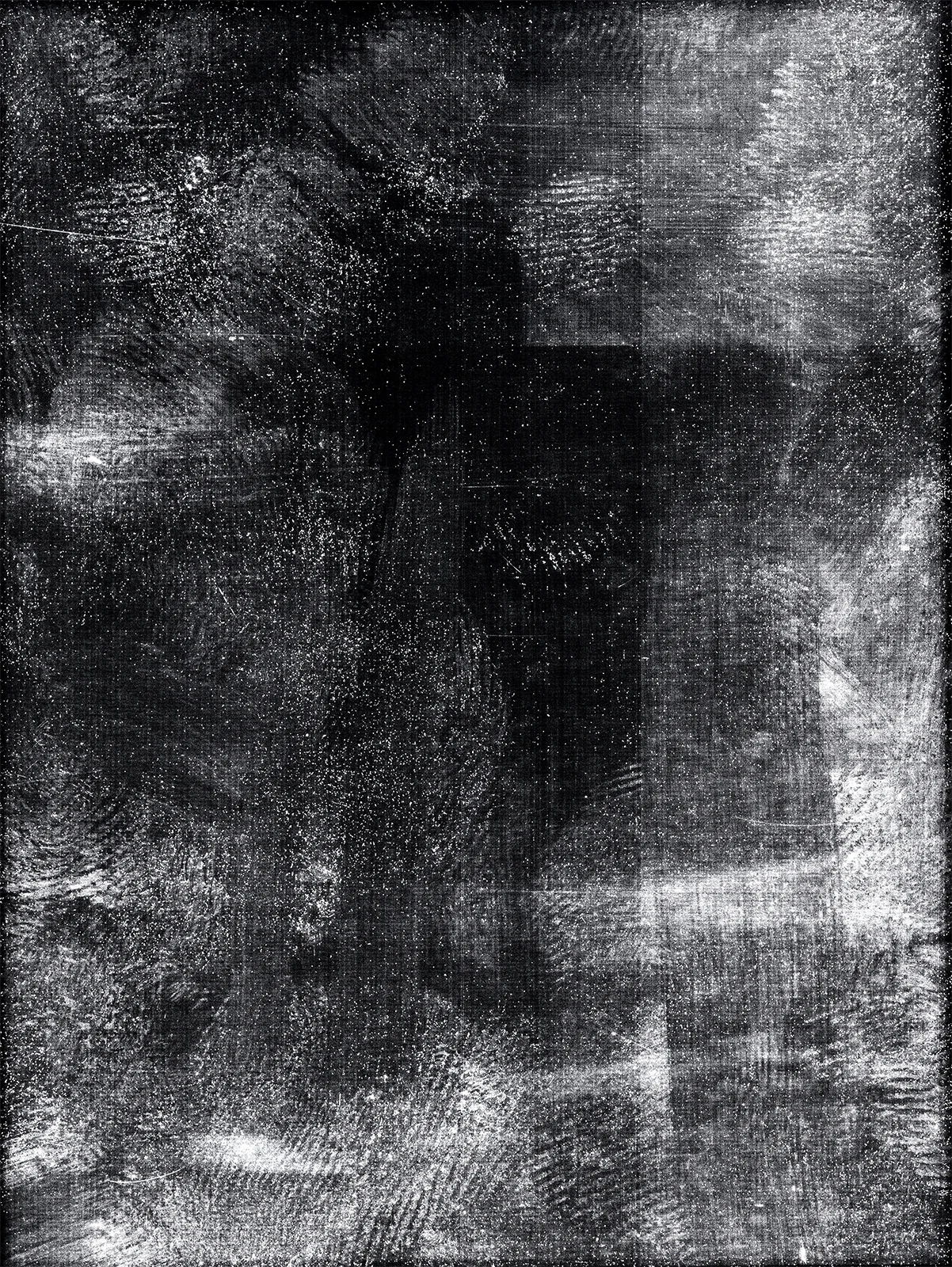 The digital prints on canvas in the touched/screened series originate from the scanned surfaces of touchscreen mobile devices (smartphones, tablets, etc.) Captured in each scan are the fingerprints, marks, and smudges that have accumulated upon the screen of the corresponding device. The title of each print refers to the day and time when the associated image file was saved to my computer’s hard drive, information which is also embedded as metadata in the file.